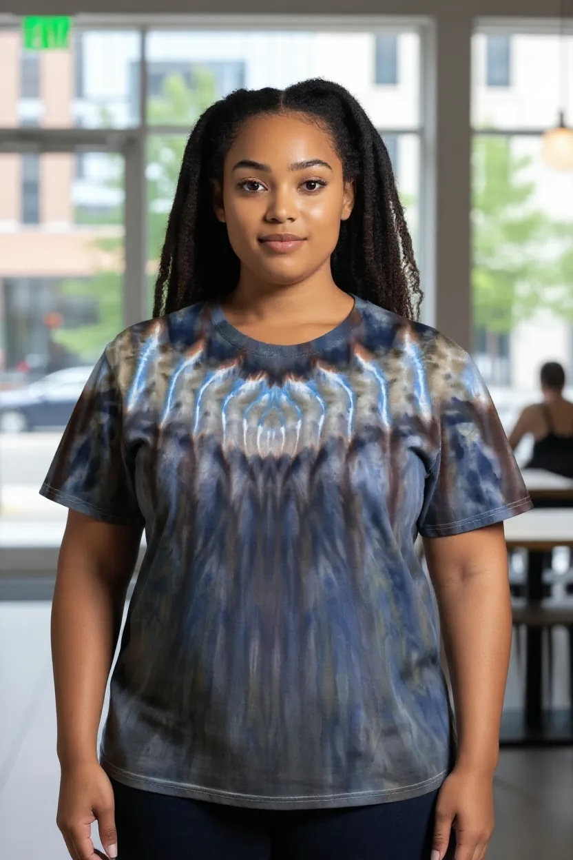 This "Chorus of Angels" is a bit more subdued than the other one I posted. They all are truly a one of a kind piece of art. This t-shirt is a Gildan Ultra Softstyle size XL. These are very nice to wear due to the ring spun cotton. They come pre-shrunk, but please refer to the measurements below for a truer fit.