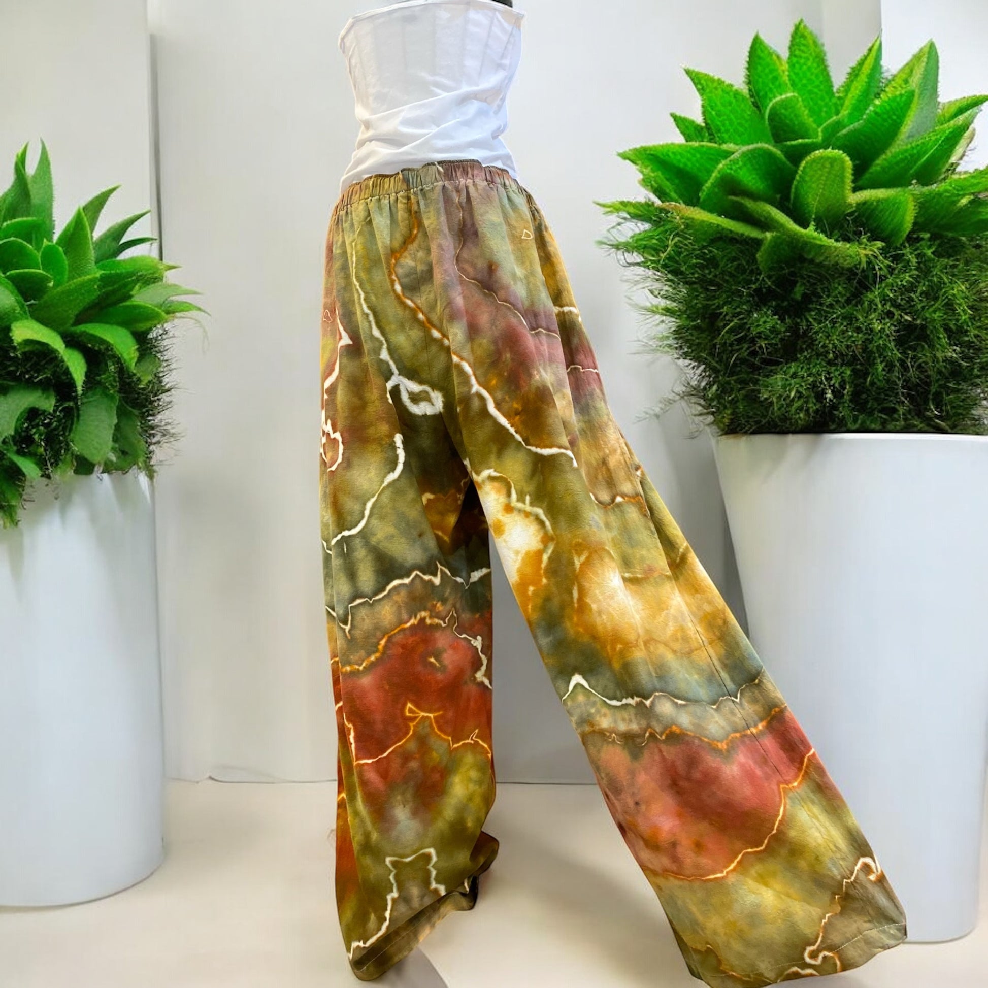 These Geode Design, Loose Fit, Non-Stretch, Women's 2 XL (size 16) Pants have a drawstring and pockets.