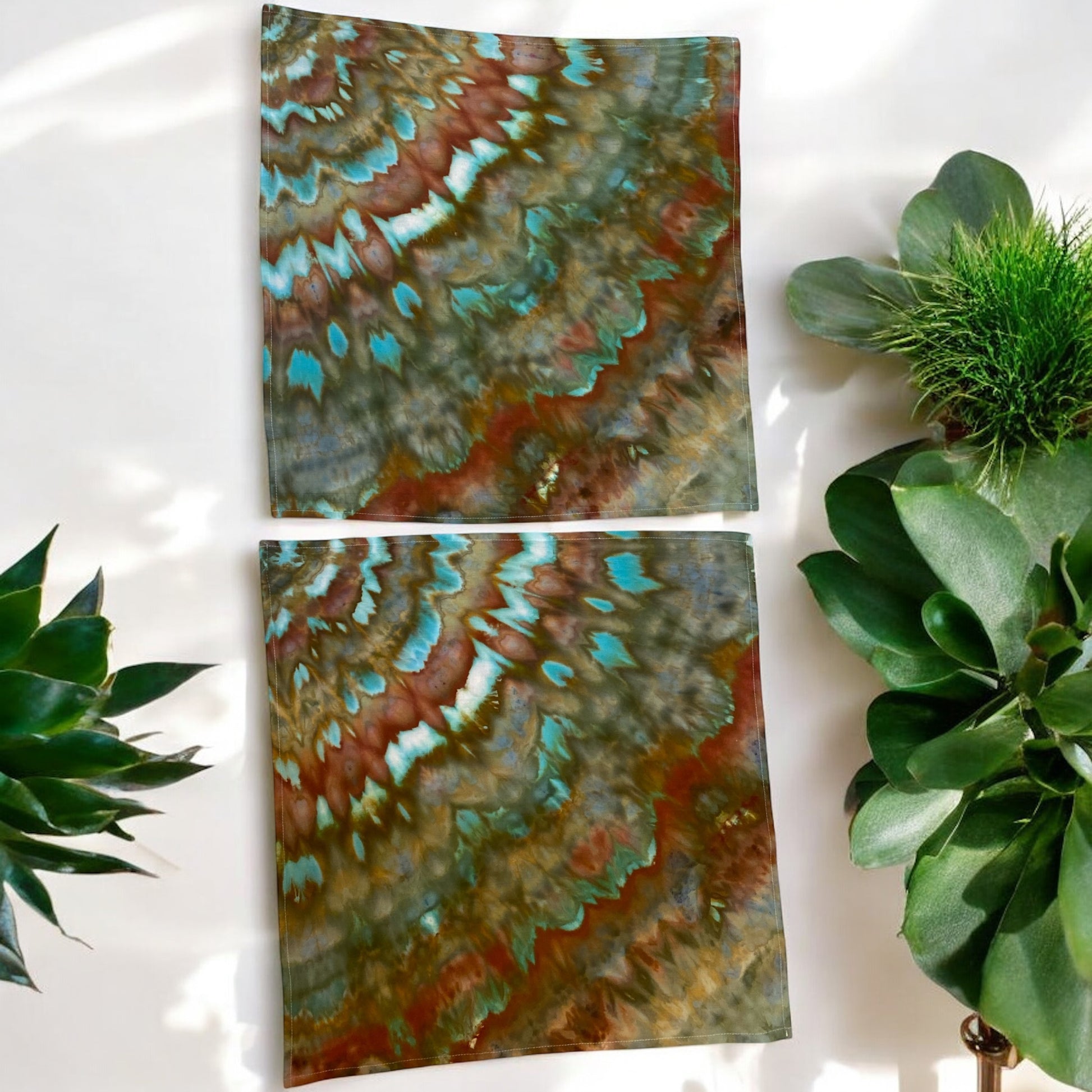 These Two Matching Feather Design Flour Sack Towels are 100% Cotton. Also known as Tea Towels and are used for Cleaning & Drying, or mere decoration! They are highly absorbent. Size 28 x28 each.