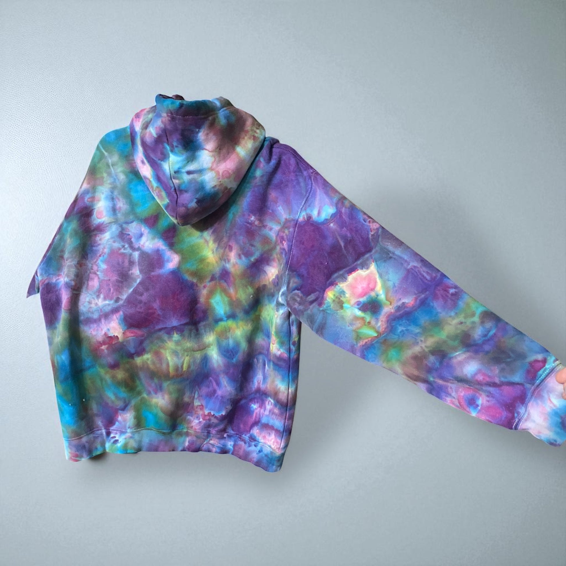 This bright geode design heavy hoodie will have you snuggled in! It's a 80/20 blend so that makes it not just cozy but soft as well. Slight drop shoulder cut. It come's preshrunk and true to fit with good quality that will last wash after wash.