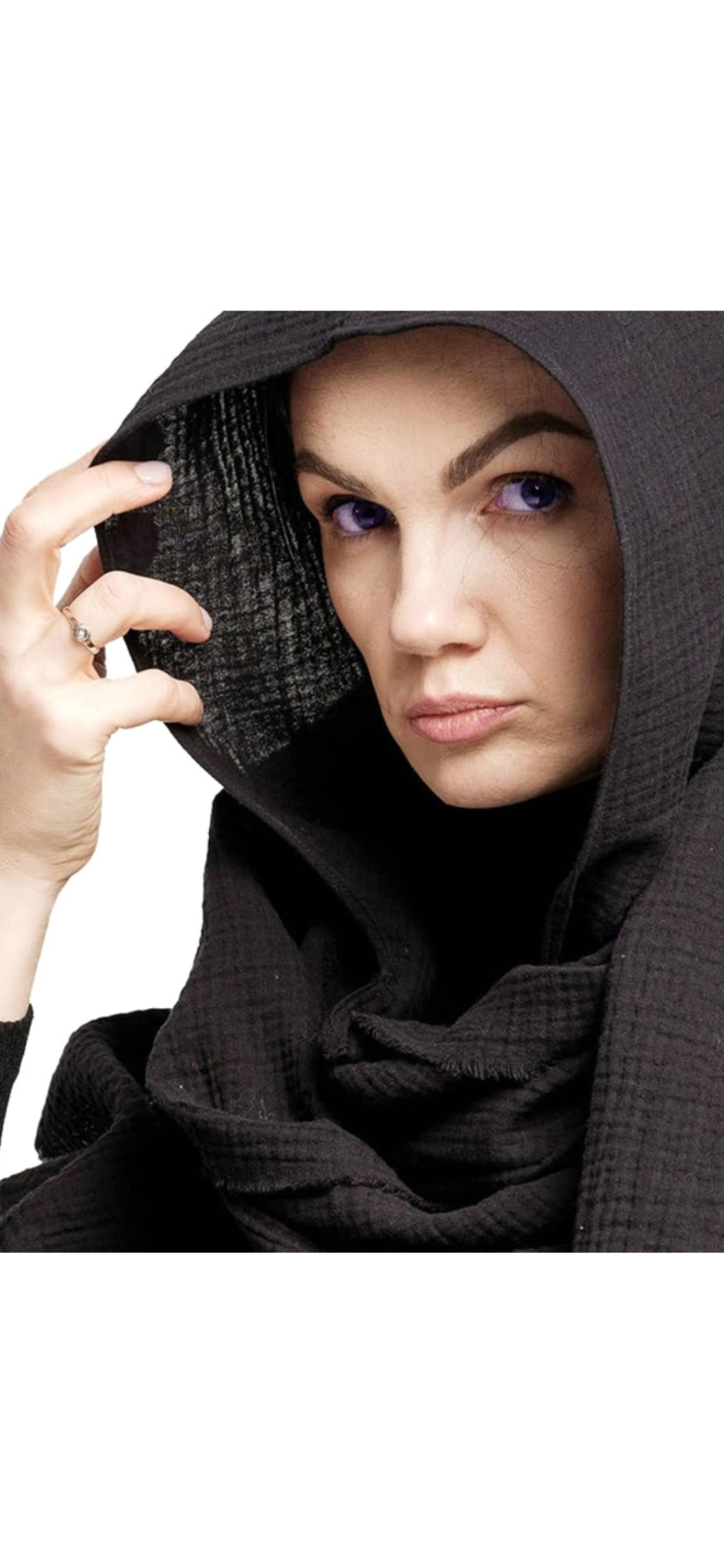 This fun Reverse Geode is on a Shawl known as a hooded scarf. This definitely is a showcase piece to accent any outfit allowing show off your unique style. They come in one size and are made of Cotton and Linen....Hand Wash Only