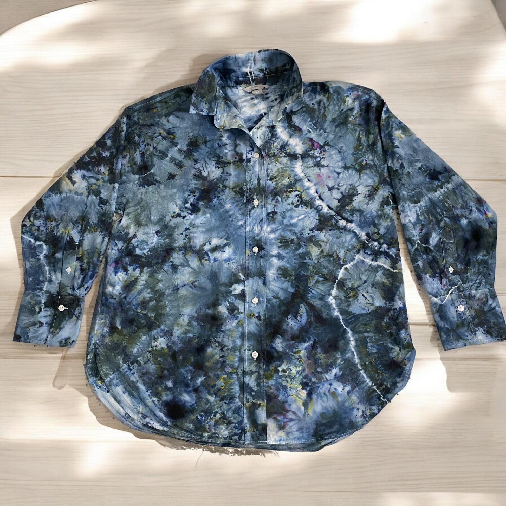 Loose Geode Design Women's Oversized Button Down Collared Shirt Size Small
